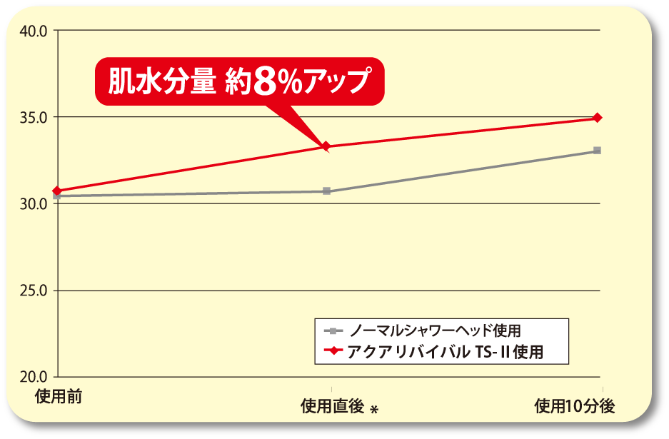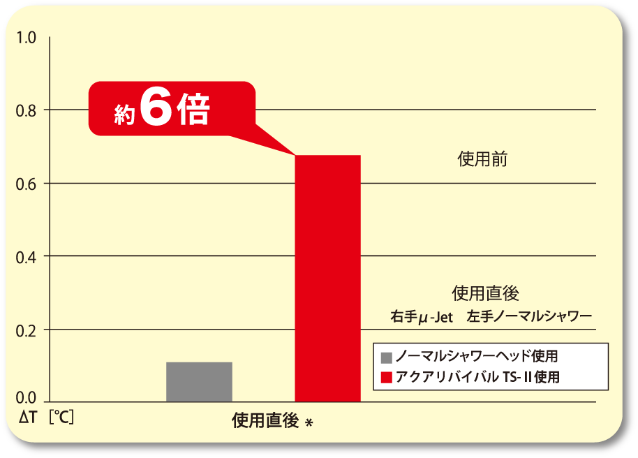 検定の結果、シャワーを浴びた直後の肌表面温度差が約6倍!(当社比)