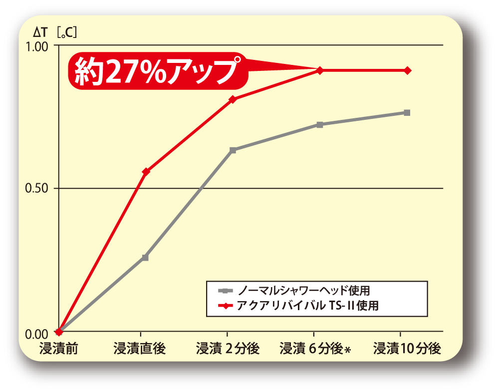 検定の結果、シャワーを浴びた直後の肌表面温度差が約6倍!(当社比)